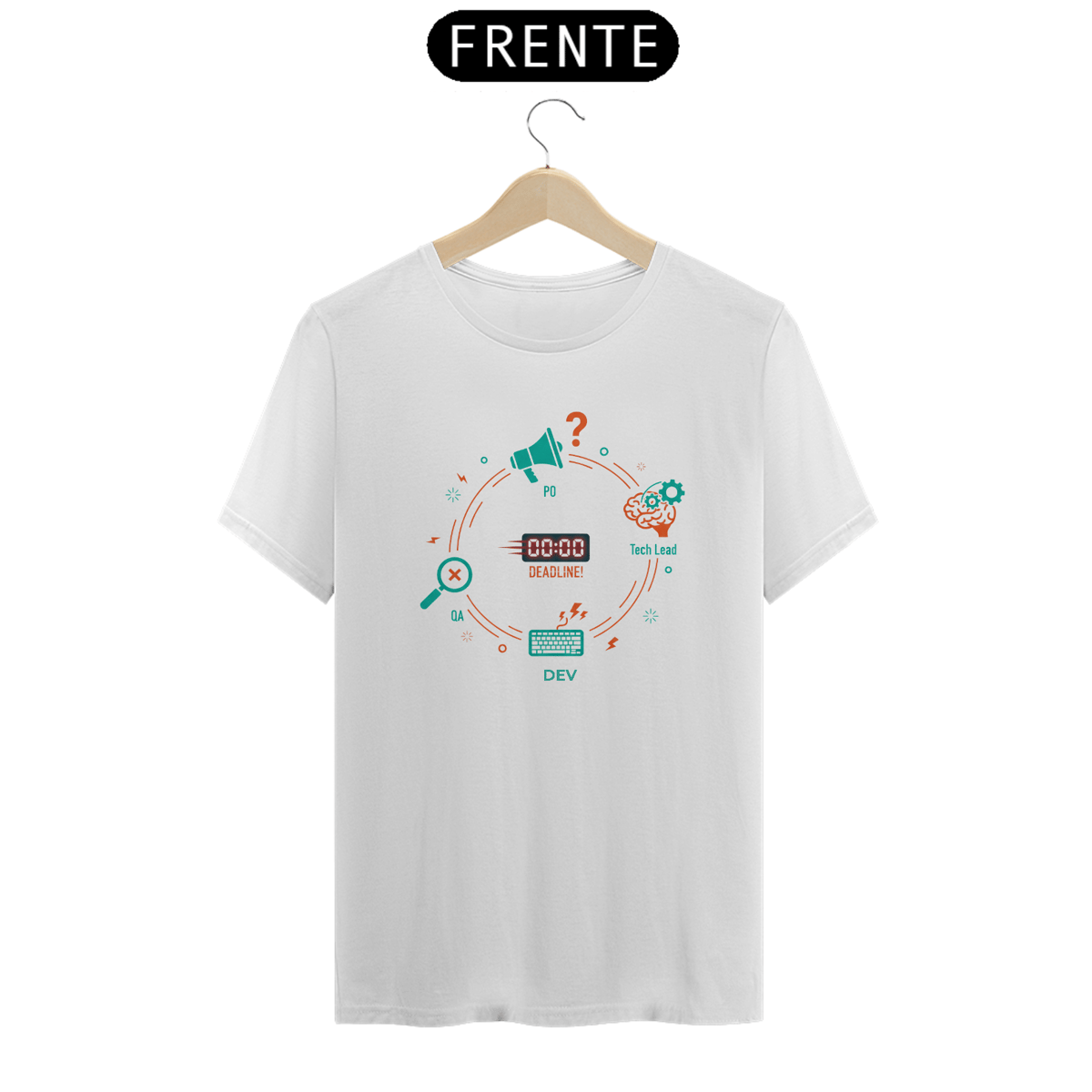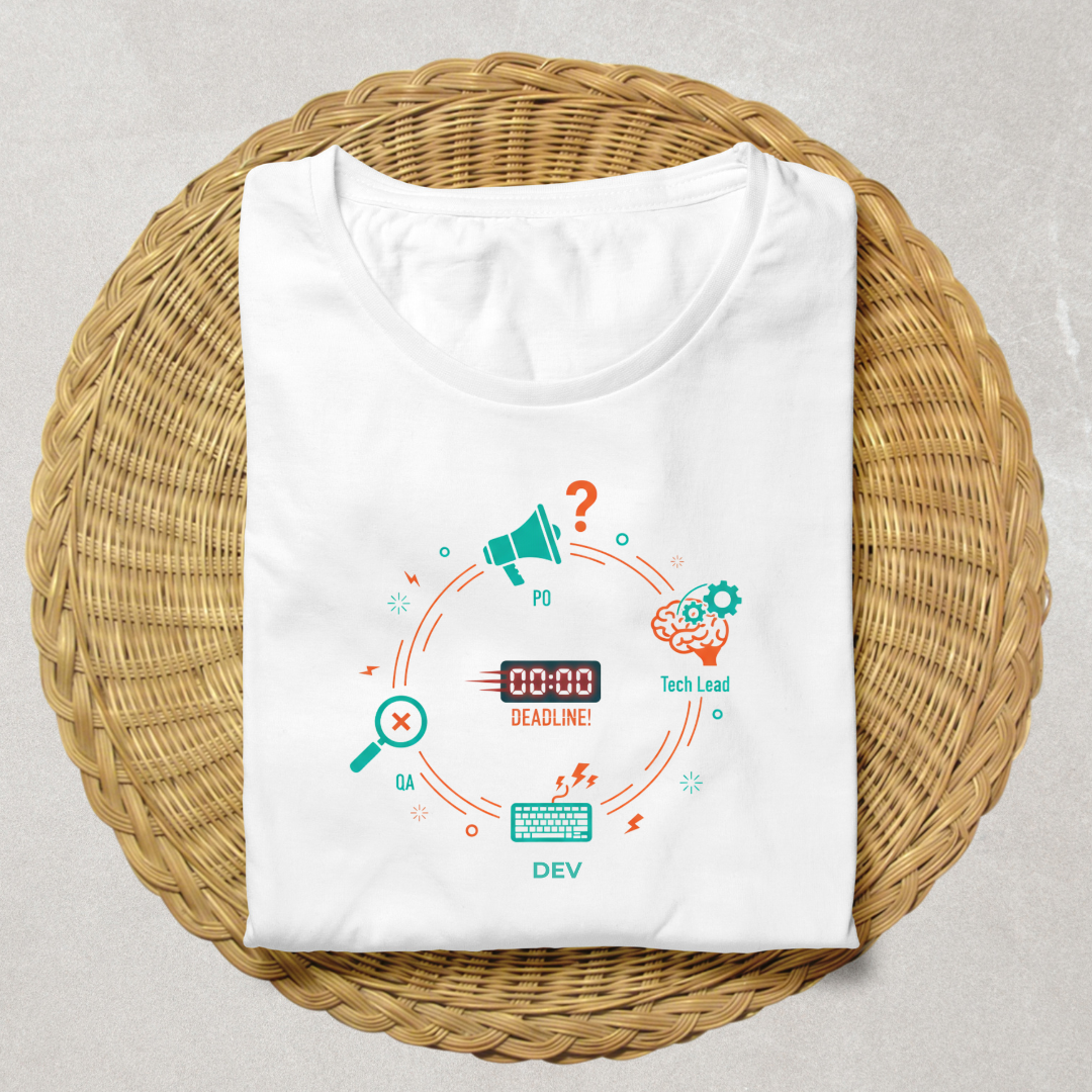 Essa camiseta é perfeita para devs, designers, PMs e qualquer membro de equipe que saiba que trabalhar em squad é uma aventura diária.